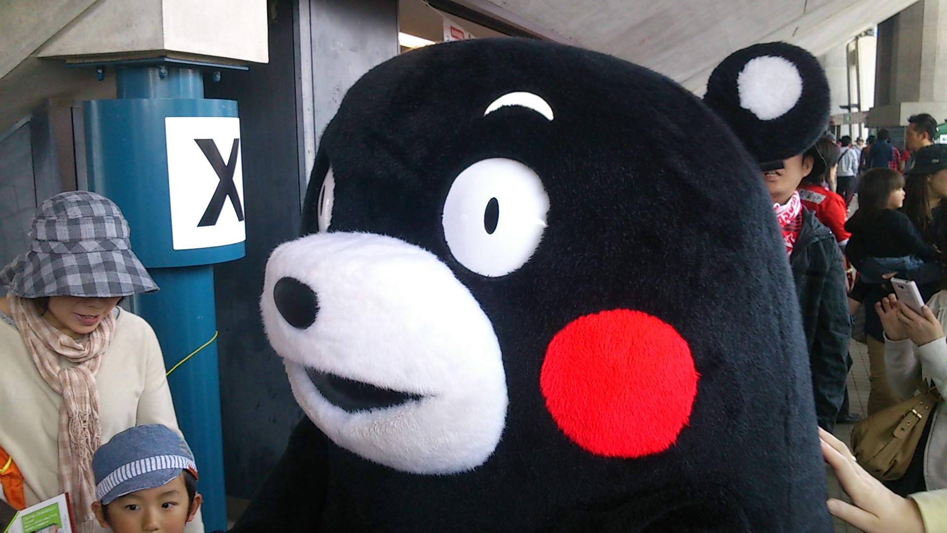 コンコースを散策していたら、相変わらず人気者のくまモンを発見。 今回はしっぽを握ってみたw