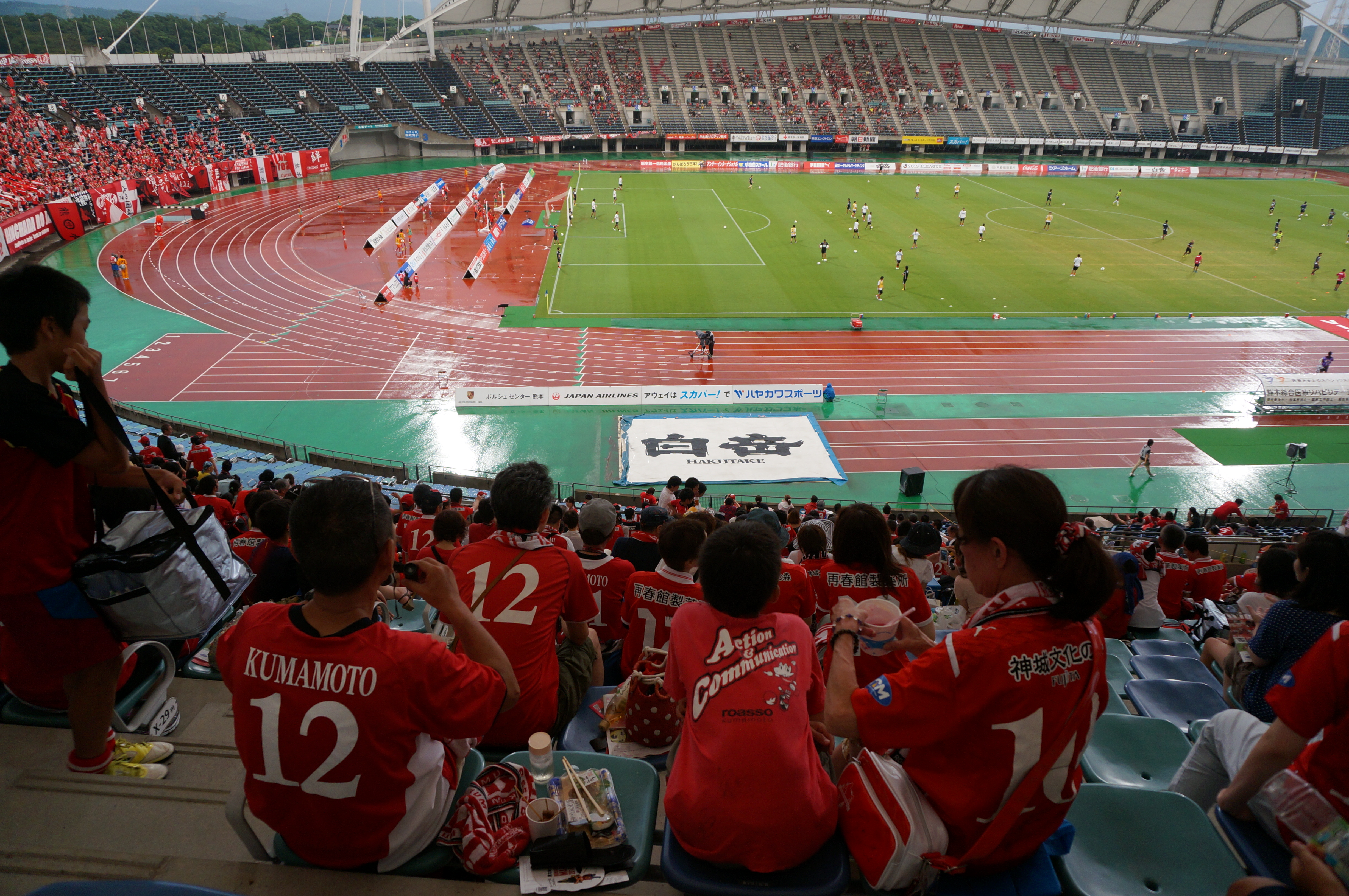 スタジアムへ着くと、雨でコンコースへ避難しているサポーター達が溢れかえっている。