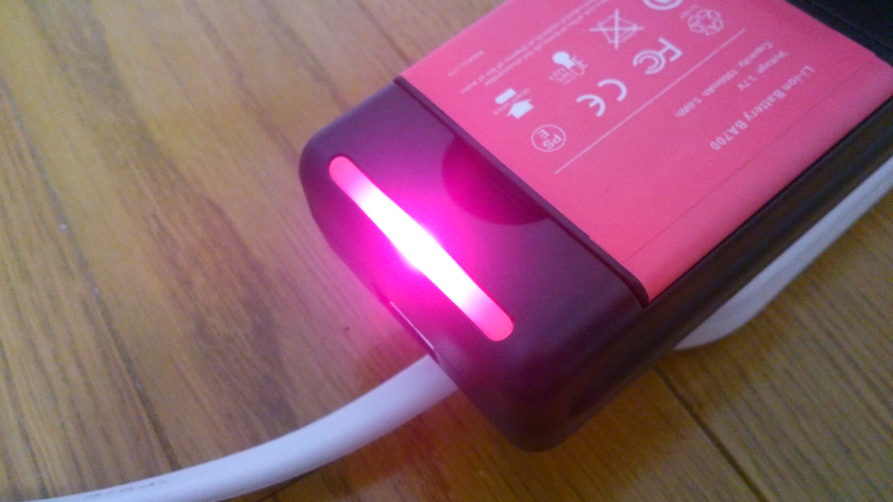 電池の回りがピンクだからか充電している時はピンク色になる(笑)
