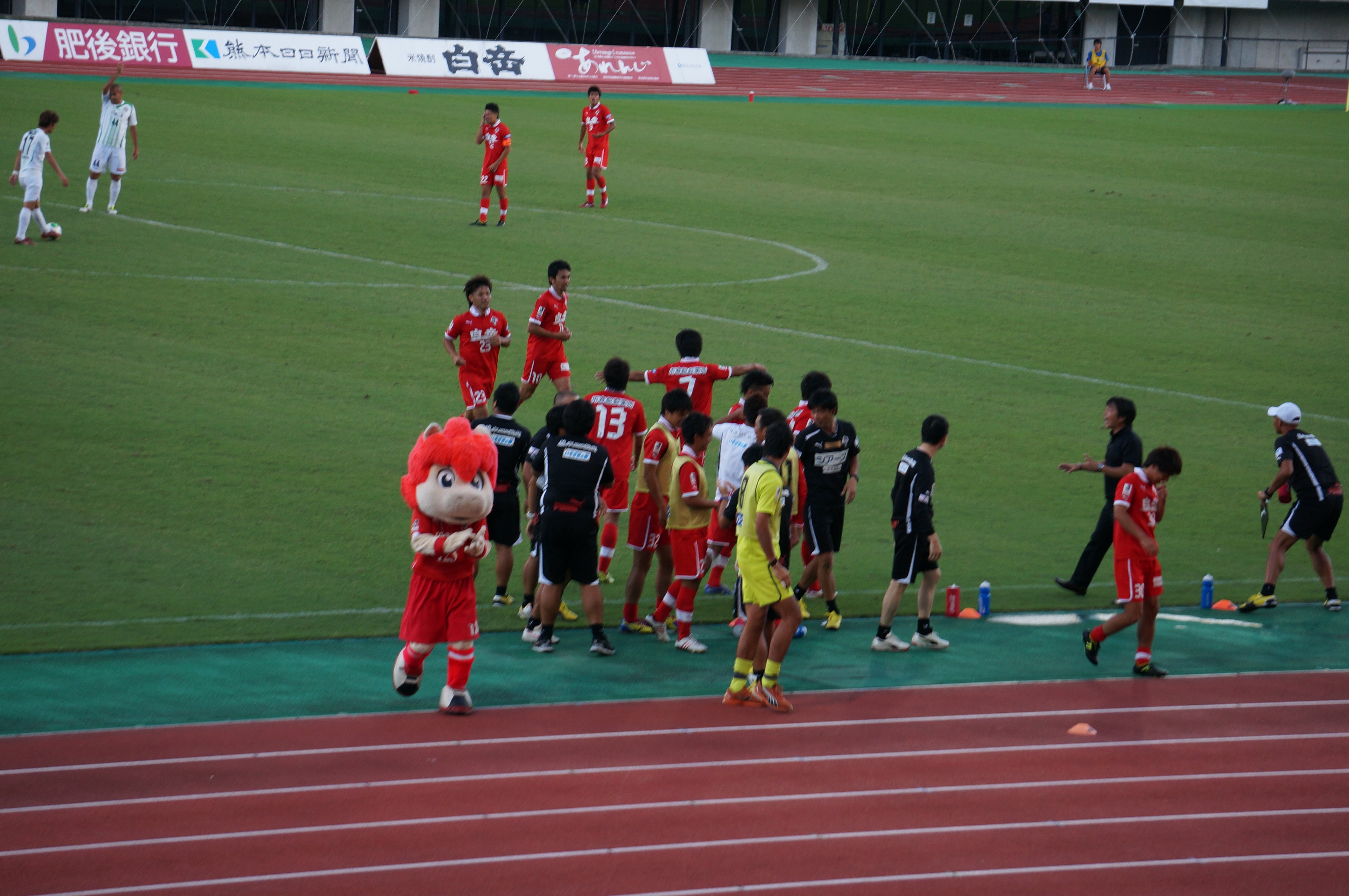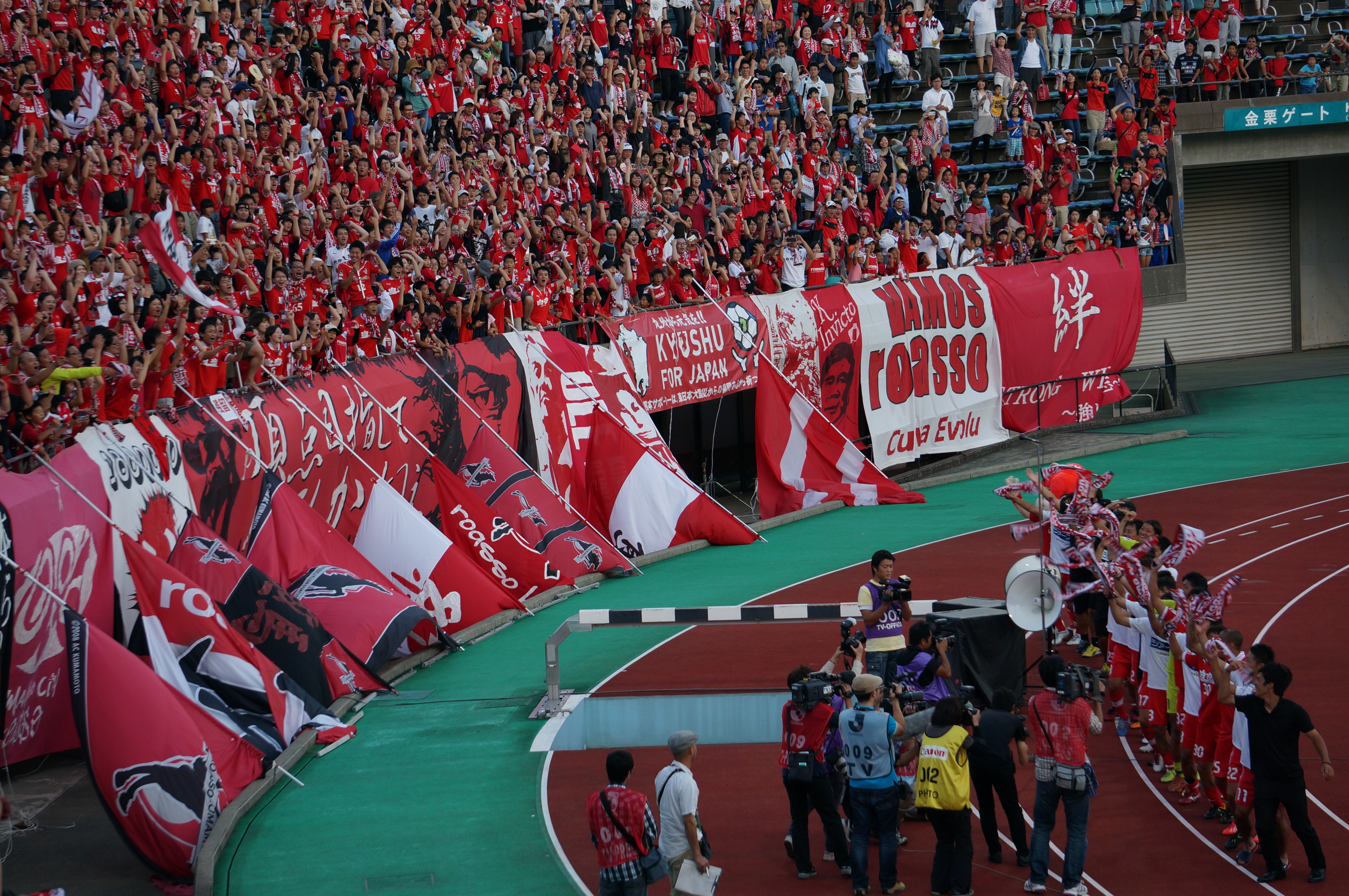 そういやロアッソのスタッフも、カモンロッソ!がやりたくて走ってゴール裏に来てたなぁ(笑)