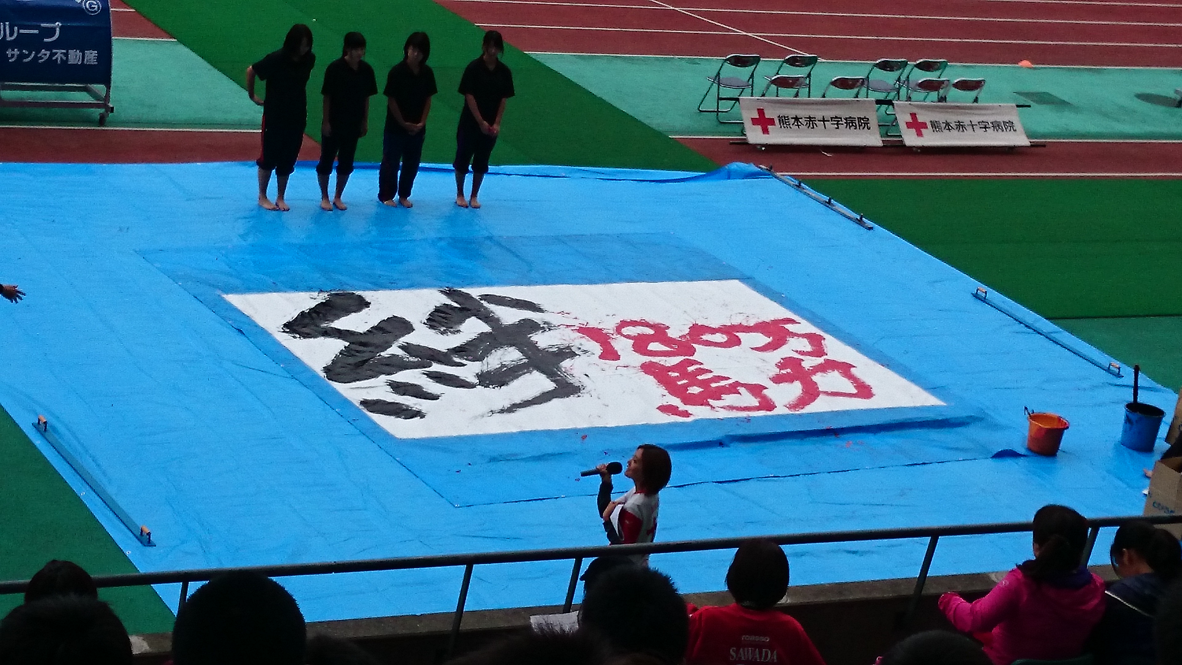 「八代市タウンデー」ということで、八代の高校の書道部員が画いた力作。